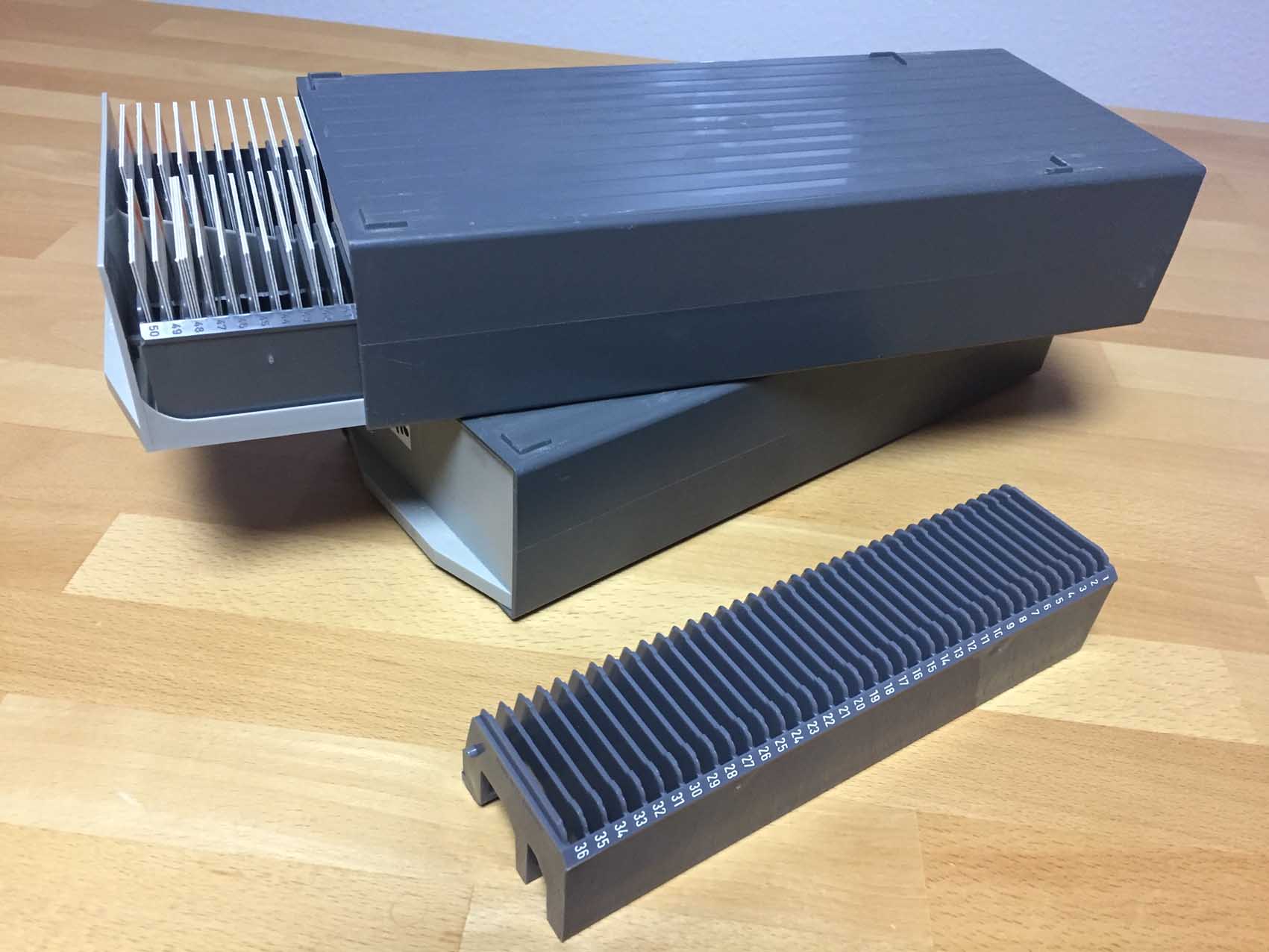 Es gibt eine Reihe unterschiedlicher Diamagazine. Viele Hersteller von Diaprojektoren hatten ihre eigenen Systeme entwickelt, was natürlich dazu führte, dass man neben seinen Dias auch seinen Projektor mit zur Vorführung auf Veranstaltungen oder in den Freundeskreis mitnehmen musste. Die Diamagazine waren in den allermeisten Fällen nicht kompatibel. Die Aufnahmekapazität der Magazine lag zwischen 30 und 140 Stück.