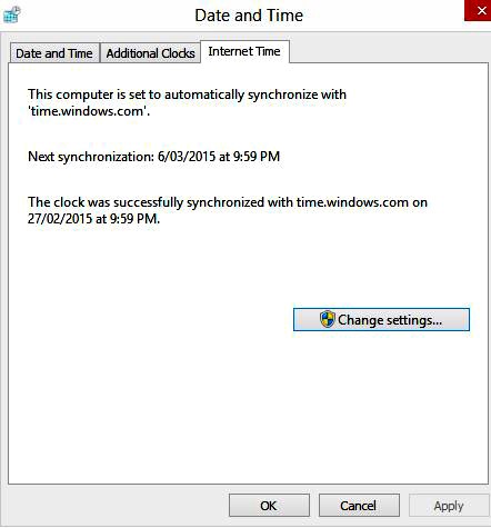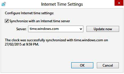 When selecting the Internet Time tab, you'll read: "This computer is set to automatically synchronize with 'time.windows.com'." and: