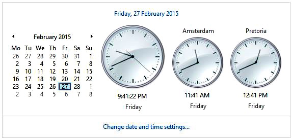 The clock on our PC is the most accurate, as it automatically synchronizes with an Internet time server. Windows has a built-in "service" which automatically connects with an atomic clock server, operated by the National Institute of Standards and Technology (NIST) in the United States. The clock is updated on a regular basis. One needs to be connected to the Internet for the synchronization to occur.